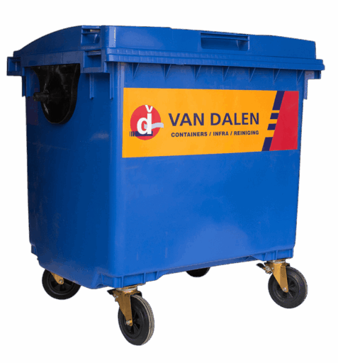 Zoek je een rolcontainer 660 liter? Dit kan vanaf €50 per 4 weken. Deze ruime 4-wieler is ideaal voor 12 tot 13 vuilniszakken restafval / bedrijfsafval, papier en karton, glas of PMD. Vraag direct je offerte aan! Geen gedoe met te kleine bakken; deze container biedt volop ruimte en doet precies wat hij moet doen voor jouw bedrijf.